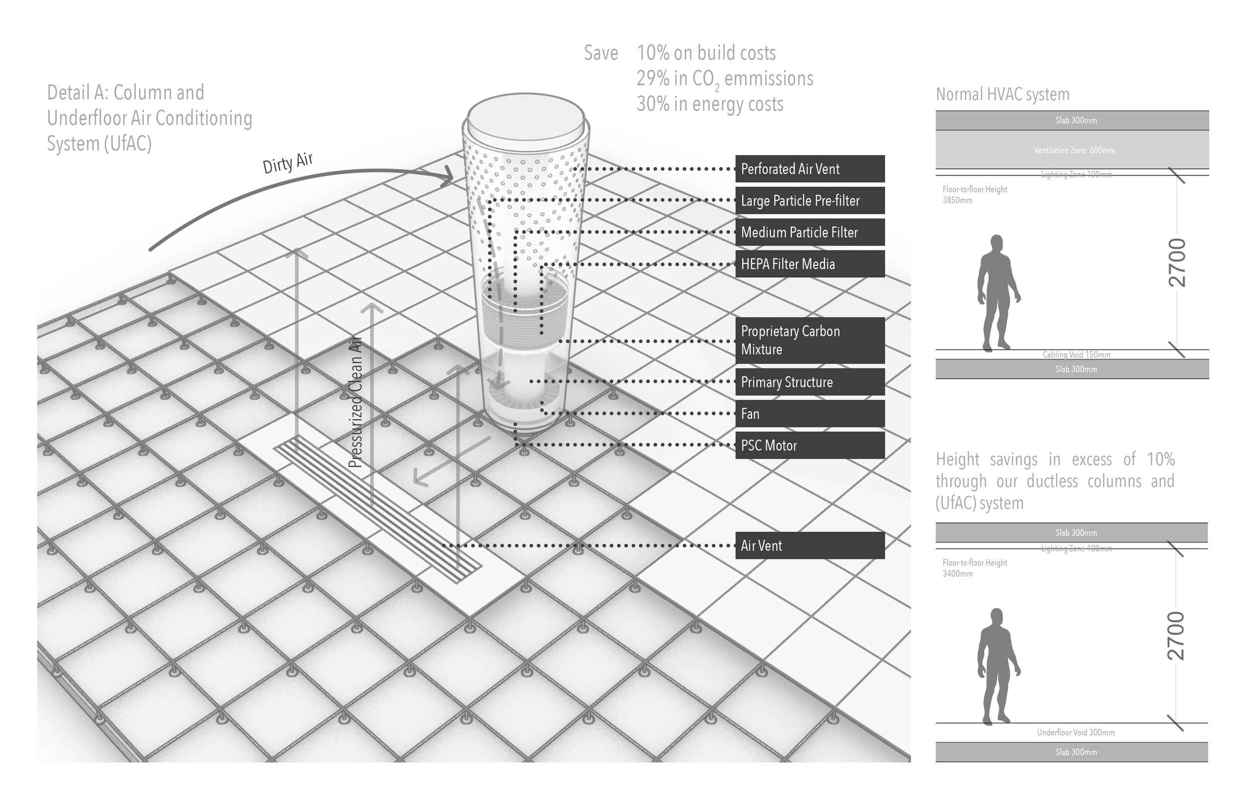 At the core of the intervention is a shift from turbulent, recirculated air to a precision-engineered Underfloor Air Conditioning (UfAC) system. By eliminating traditional ductwork in favour of a pressurised plenum, the design delivers a constant stream of fresh air directly from the floor level, utilising HEPA technology to filter 99.97% of airborne particulates. This displacement ventilation strategy effectively isolates aerosols and minimises transmission risks, ensuring that the lifecycle of the building is defined by the peak biological performance and well-being of its occupants.